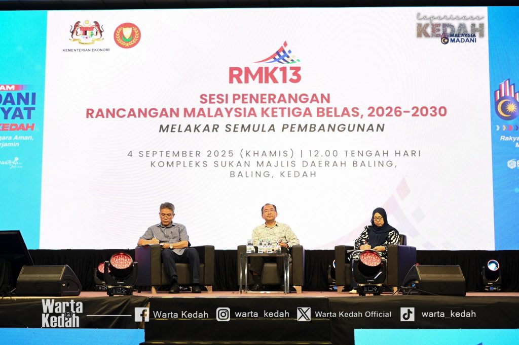 BALING – Kementerian Ekonomi dengan kerjasama Kerajaan Negeri Kedah telah melaksanakan Sesi Libat Urus Penerangan Rancangan Malaysia Ketiga Belas (SLU Pasca Pembentangan RMK13) di Dewan Tunku Abdul Rahman, Baling di sini, hari ini.